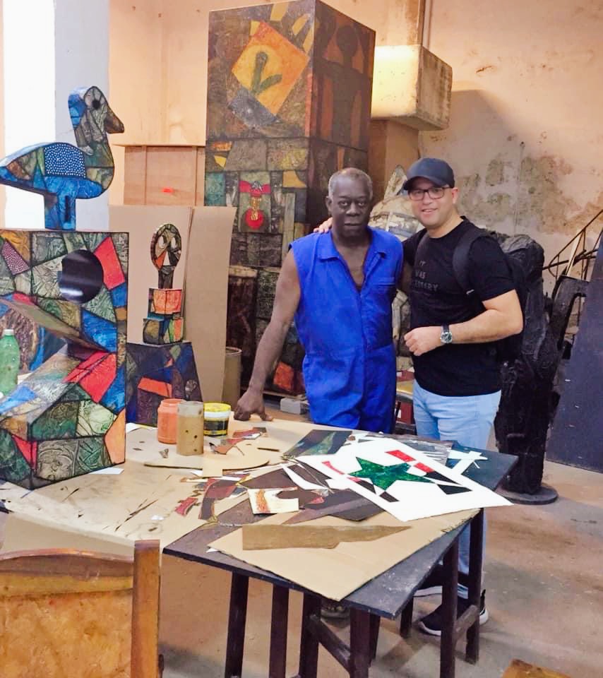 Choco aquí con el amigo Luís Vicente, fundador y director ejecutivo de Nimba Art Gallery.