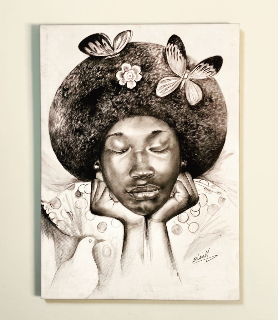 AVAILABLE | Afro beauty | oil on canvas | E. Mafouta, Congoles plastic artist | The work is only available at the Nimba Art Gallery | contact us nimbartgallery.com